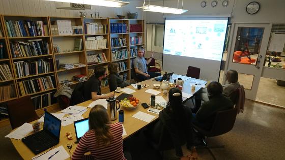 Stone Age Demographics workshop with Peter Jordan. The participants (Skandfer, Gjerde, Hood, Vollan, Gordaoff, Terkelsen, Damm) presented ethnographic and historical evidence for population size and distribution patterns, and discussed interpretation of the data from northern Norway.