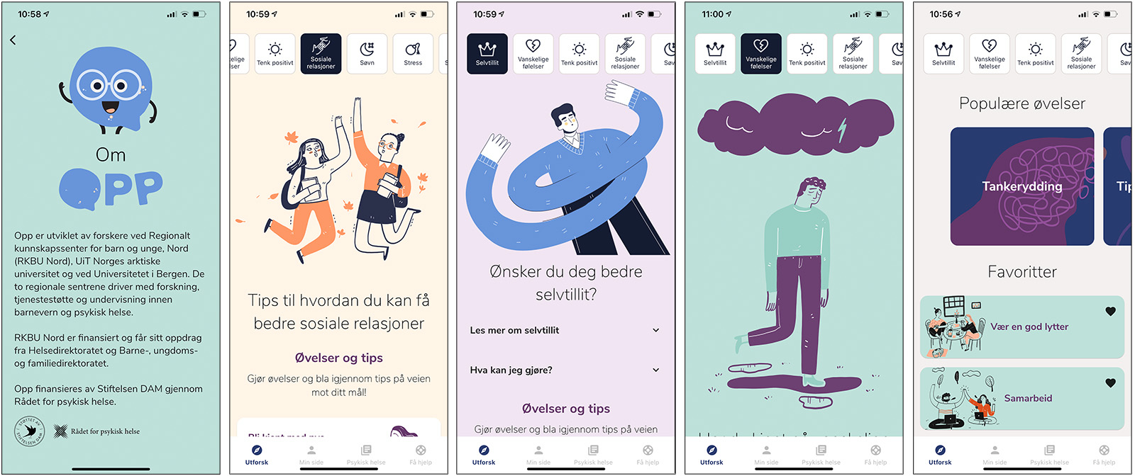 Innholdet i appen er også basert på forskning. For eksempel har Opp en tankeryddingsøvelse som er basert på kognitiv atferdsterapi (Ariso & Reyero, 2014). Råd og tips for bedre søvn er utarbeidet i samarbeid med søvnforskere fra Barn i Bergen studien (Hysing et al., 2018). I tillegg er puste- og avspenningsøvelser anerkjente teknikker for å redusere stress.