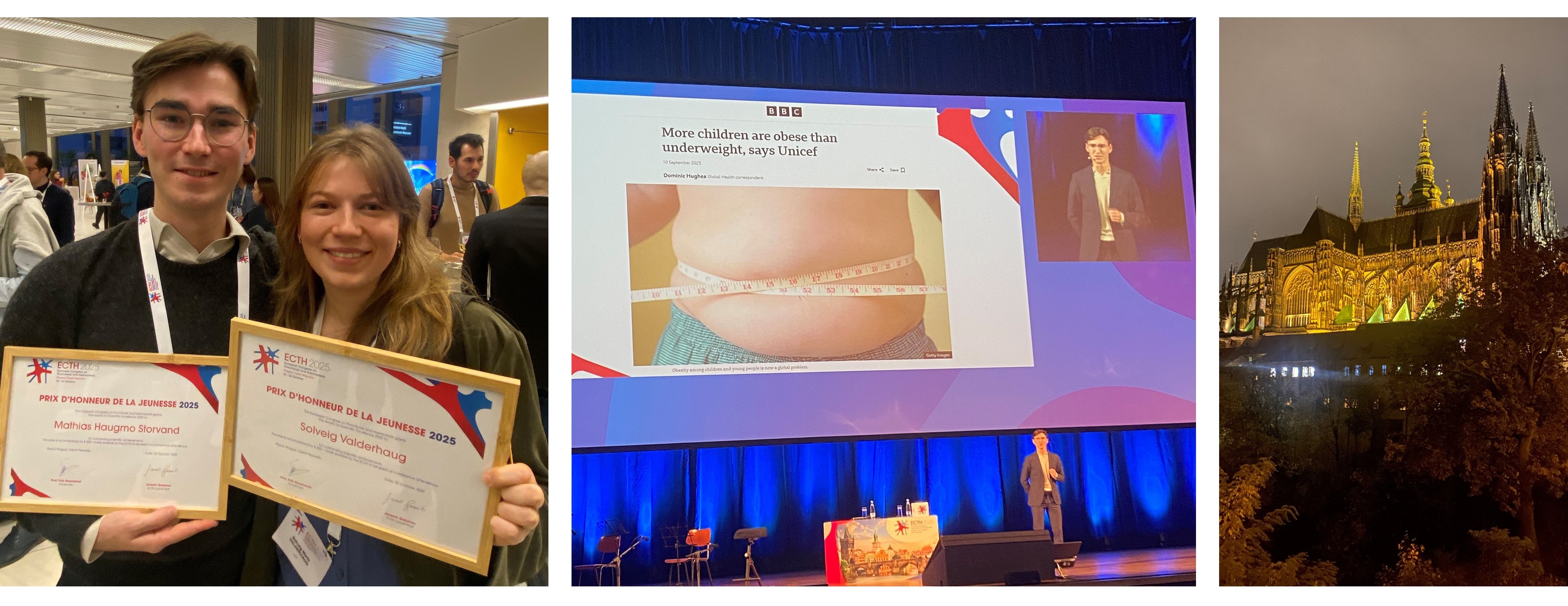 The European Congress on Thrombosis and Haemostasis (ECTH), which is held every second year, was held in Prague on October 22-24. The conference had 500 participants and a group of 16 members from TREC attended. We presented the most recent results from our projects, and three of our MD/PhD-students (forskerlinjestudenter) and PhD-students received awards.Young investigator awards to Mathias and Solveig (left), Science Fast and Furious (middle), Prague Castle (right). Photos: Sigrid Brækkan