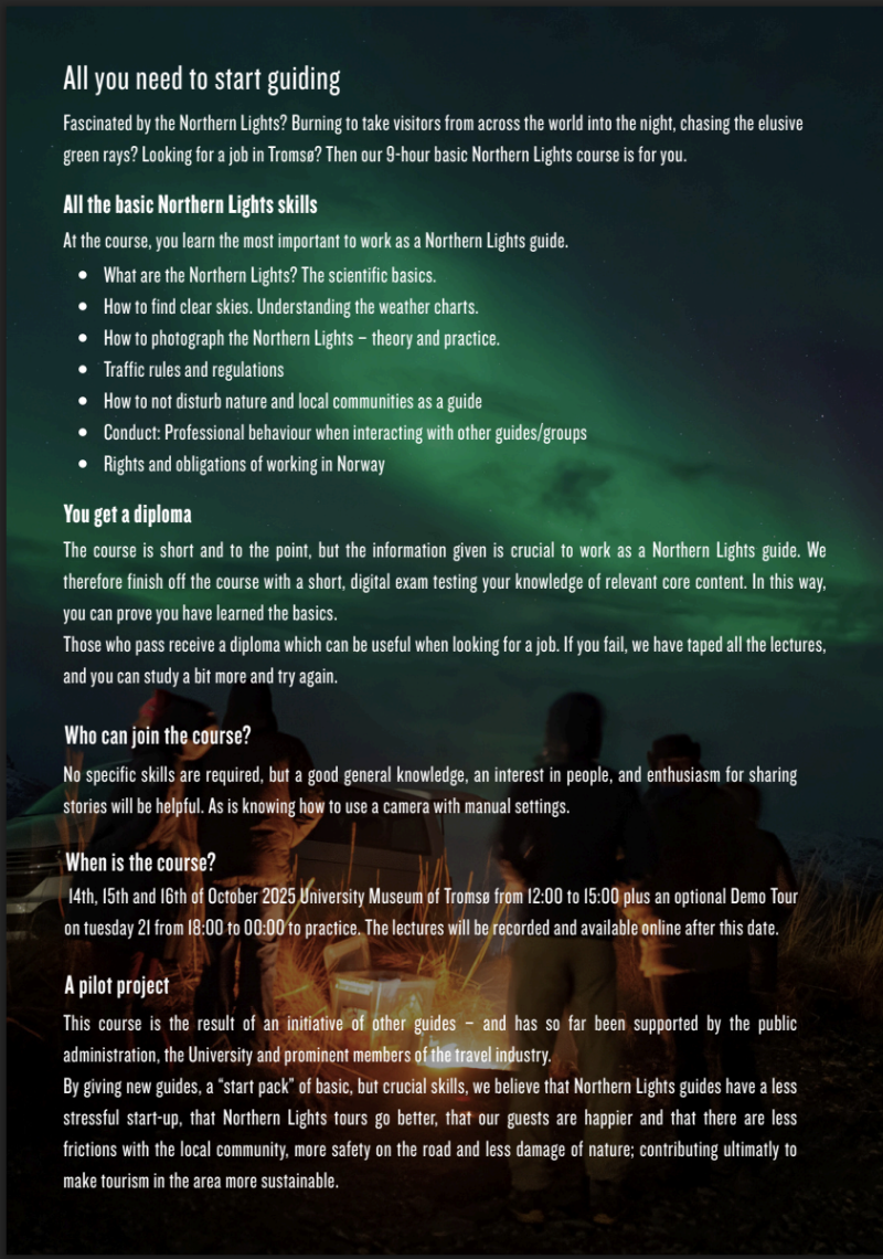 green rays? Looking for a job in Tromsø? Then our 9-hour basic Northern Lights course is for you.
