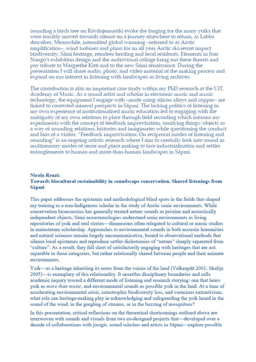 Sámi Rhythm, Sounds of Nature, Yoik: Contemporary Research in Acoustic Ecology | Symposium