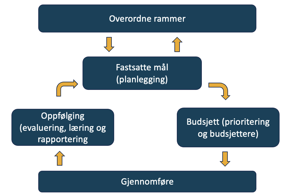Figuren under viser de ulike elementene i virksomhetsstyringen og hvordan de henger sammen.